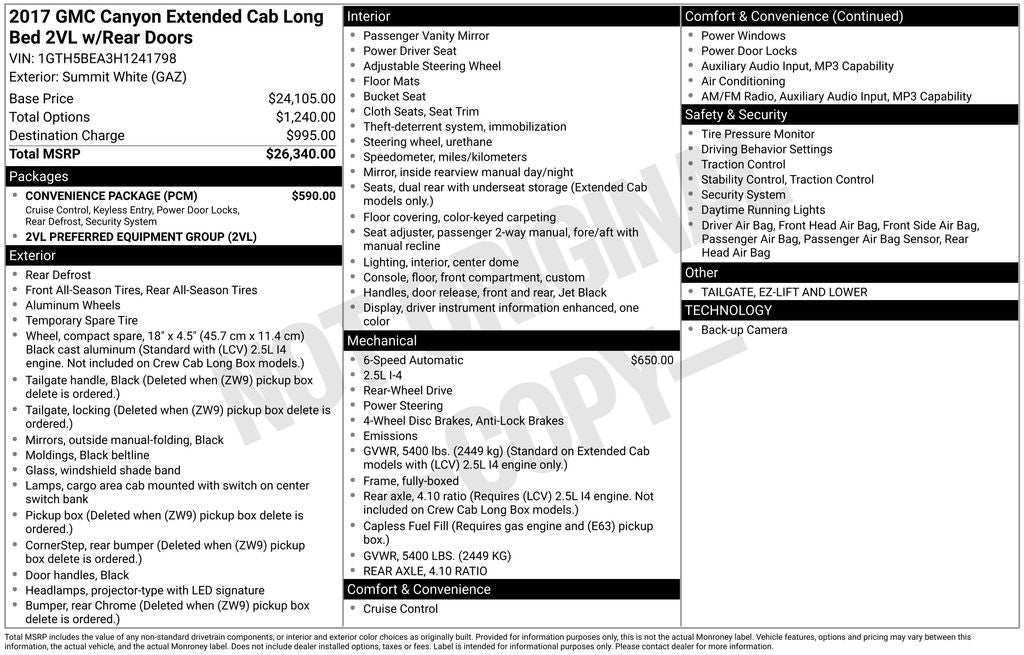 - Vehicle Name: GMC Canyon