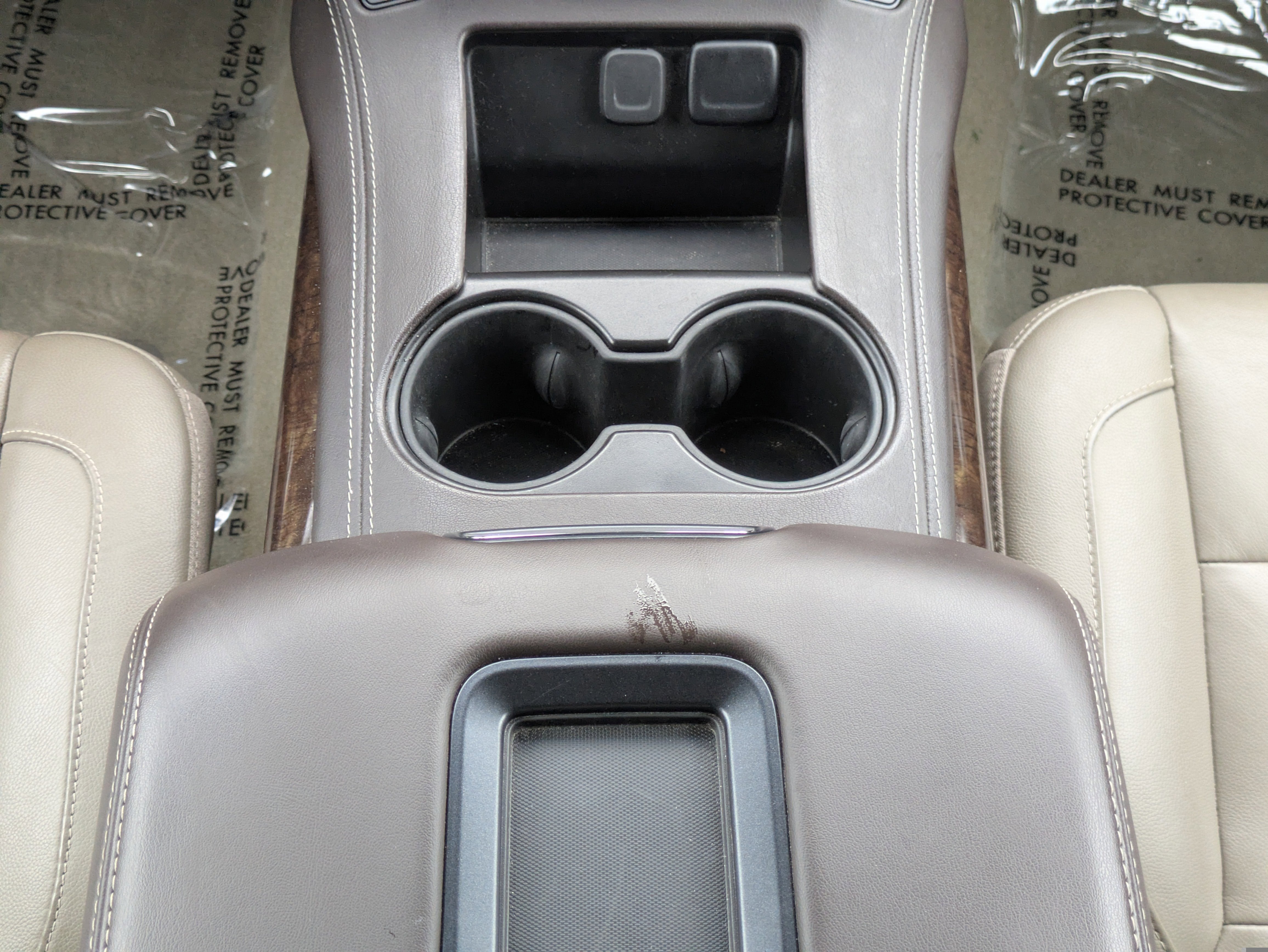 - Console, floor with storage area, cup holders and auxiliary jack