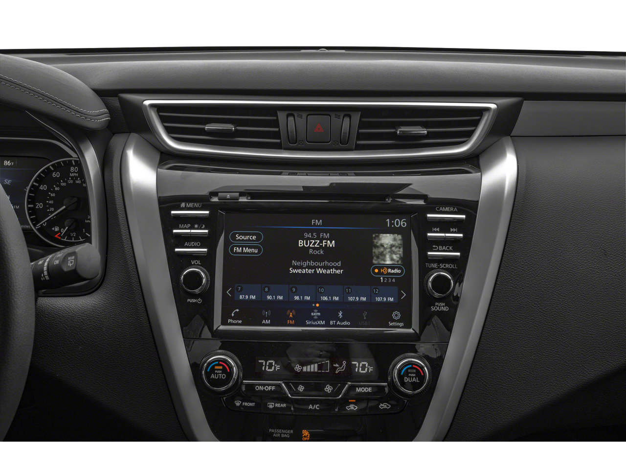 This mid-size suv offers Apple CarPlay for seamless connectivity. The leather seats in the Nissan Murano are a must for buyers looking for comfort, durability, and style. The state of the art park assist system will guide you easily into any spot. This mid-size suv's Lane Departure Warning keeps you safe by alerting you when you drift from your lane. This Nissan Murano features a high end BOSE stereo system. Never get into a cold vehicle again with the remote start feature on this model. It comes equipped with Android Auto for seamless smartphone integration on the road. Bluetooth® technology is built into this vehicle, keeping your hands on the steering wheel and your focus on the road. with XM/Sirus Satellite Radio you are no longer restricted by poor quality local radio stations while driving the Nissan Murano. Anywhere on the planet, you will have hundreds of digital stations to choose from.